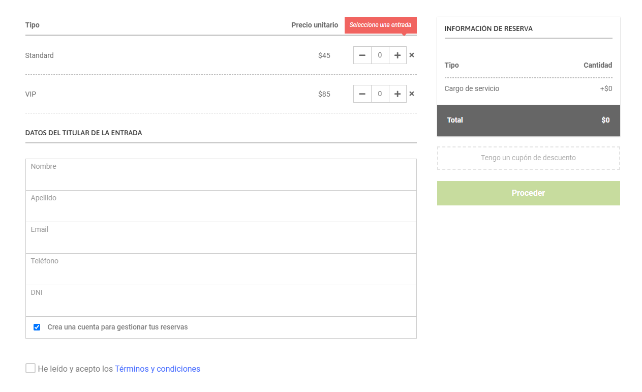 Una vez elegido el tipo de ticket, el usuario deberá ingresar la información solicitada, como su nombre, apellido, correo electrónico, teléfono y DNI/Pasaporte.